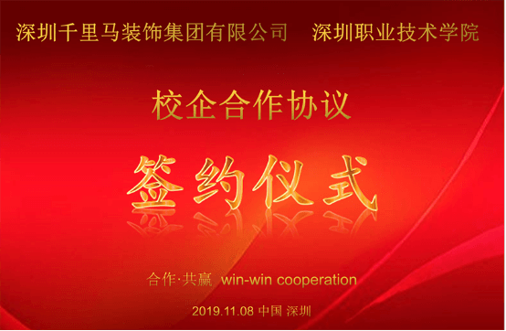 每一步都在確立新高度的深圳千里馬裝飾集團,迎來了新的校企合作關系。 2019年11月8日,深圳千里馬裝飾集團有限公司(簡稱深圳千里馬裝飾集團)與深圳職業技術學院(簡稱深職院)校企合作簽約儀式在深圳千里馬裝飾集團總部舉行。 深圳千里馬裝飾集團董事長李向東、深職院建筑與環境工程學院喻圻亮副院長、吳剛博士等人參加了本次簽約儀式。 深職院喻圻亮副院長針對本次校企合作,詳細介紹了深職院的辦學規模、師資建設、教學建設、學術研究、人才培養模式等方面的情況,讓我們對深職院有了深刻的了解,同時也獲得了深圳千里馬裝飾集團董事長李向東的高度認可。 深圳千里馬裝飾集團董事長認為,人才本身是企業的核心力量。正所謂“終身之計,莫如樹人。”人才資源位于企業未來的發展道路上的首要位置,人才培養、引進、使用等機制需要不斷革新,努力培養出一線領軍創新人才,為“致力于改善客戶的生活、工作環境”盡綿薄之力。 通過本次深度交談,深圳千里馬裝飾集團與深職院達成一致意見,在長期合作、相互信任的基礎上,建立了校企戰略合作聯盟關系。 深職院將作為深圳千里馬裝飾集團“后備人才基地”,開啟深圳千里馬裝飾集團的納賢新模式。同時,深圳千里馬裝飾集團將推薦高級工程師、管理人員作為深職院的客座教授,參與深職院的教學計劃制定、課程設置。此外,深圳千里馬裝飾集團還將為深職院提供科研項目的合作機會,平等互利,共同發展。 簽約儀式 深圳千里馬裝飾集團將不斷堅持企業發展人才觀,不斷發掘創新型、高技術、高技能的人才,同時深圳千里馬裝飾集團的納賢大門隨時敞開,歡迎各位有志之士的加盟。