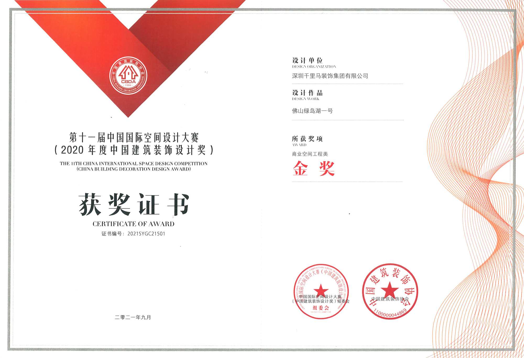9月18日,2021中國(guó)建筑裝飾產(chǎn)業(yè)發(fā)展論壇暨第十一屆中國(guó)國(guó)際空間設(shè)計(jì)大賽(中國(guó)建筑裝飾設(shè)計(jì)獎(jiǎng))頒獎(jiǎng)典禮在深圳福田圓滿落幕。